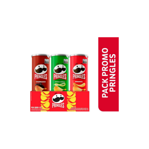 Pringles Pack Promo Salgadinho de Batata Frita 3 Sabores – Original, Creme e Cebola e Churrasco