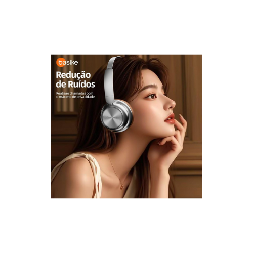▪Basike Fone de Ouvido Sem Fio Bluetooth 2025 – Headphones com Microfone, Físico Cancelamento de Ruído, Bateria de 50h, Design Retrô Estiloso – Compatível com iPhone/Android (Marrom)