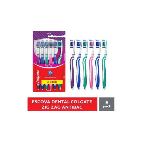 Escova de Dente Colgate Zig Zag Antibac 6 unid, Modelo 61023926, Cor Multicolorido
