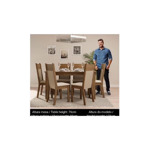 Conjunto Sala de Jantar Madesa Jaíne Mesa Tampo de Madeira com 6 Cadeiras