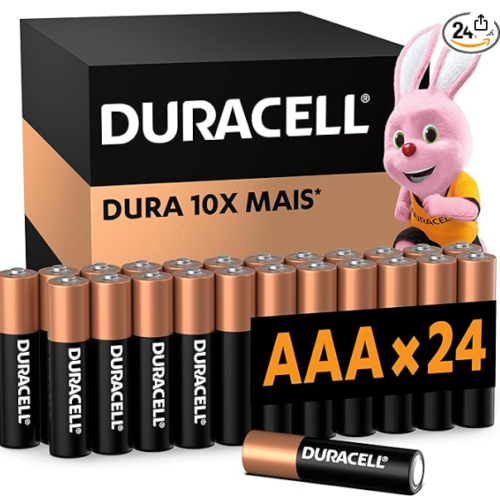 ▪Duracell Pilhas Alcalinas AAA Palito Pack 24 Unidades – Dura Mais – Ideal para Controle de Videogame e Brinquedos