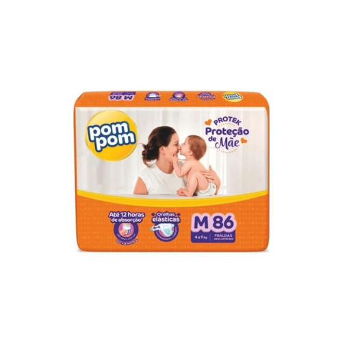 ▪Fralda Pom Pom Protek Proteção de Mãe Hiper M 86 Unidades