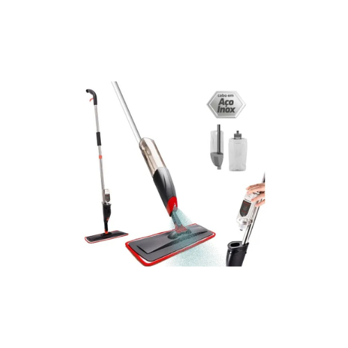 ▪Mop Giratório Spray Limpeza Flash Mágico Rodo Esfregão Flat Cor Vermelho