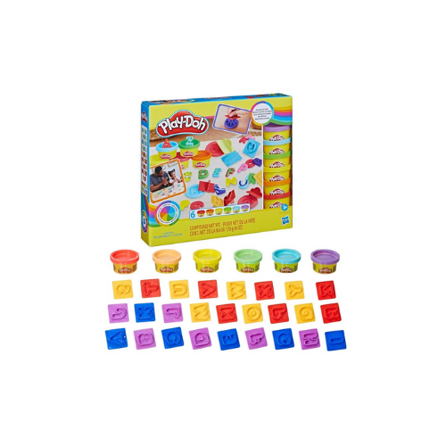 ▪Play-Doh Conjunto de Massinha Letras, kit com 6 potes de massa de modelar e acessórios, para crianças acima de 3 anos