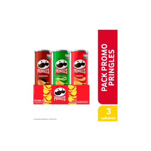 ▪Pringles Pack Promo Salgadinho de Batata Frita 3 Sabores – Original, Creme e Cebola e Churrasco