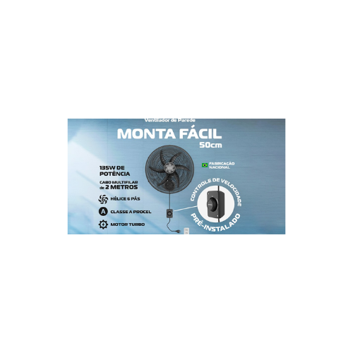 ▪Ventisol Ventilador Osc Parede monta facil 50cm 6p preto 127V premium